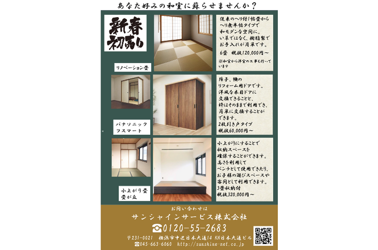 サンシャインサービス株式会社では、以下の2つの新年限定のお得なリフォームキャンペーンを開催中です。