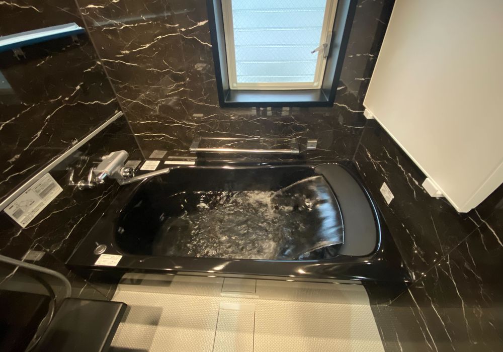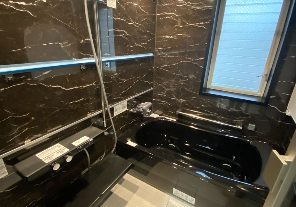浴室全体をリフォーム。今の白の空間から黒の空間へ。ガラッと雰囲気も変えていきます!