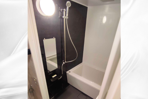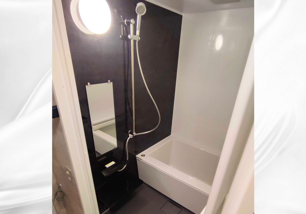 黒と白のコントラストが際立つ高級感ある浴室に交換しました