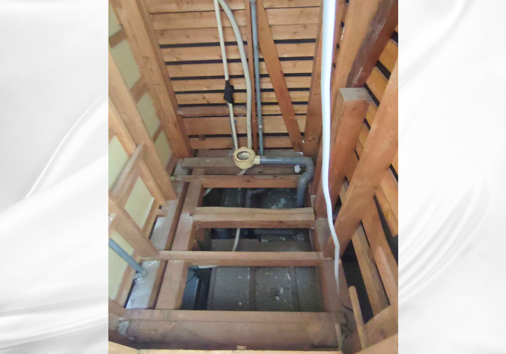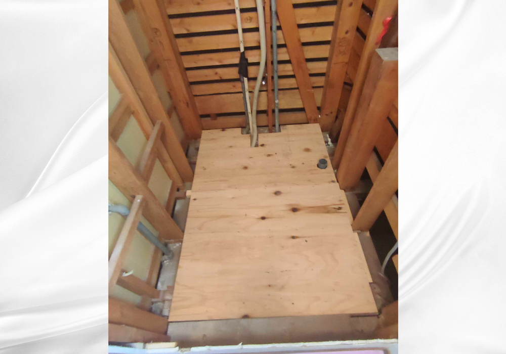 タイル貼りの在来浴室から、清潔感あふれるシャワーユニットへ工事していきます。